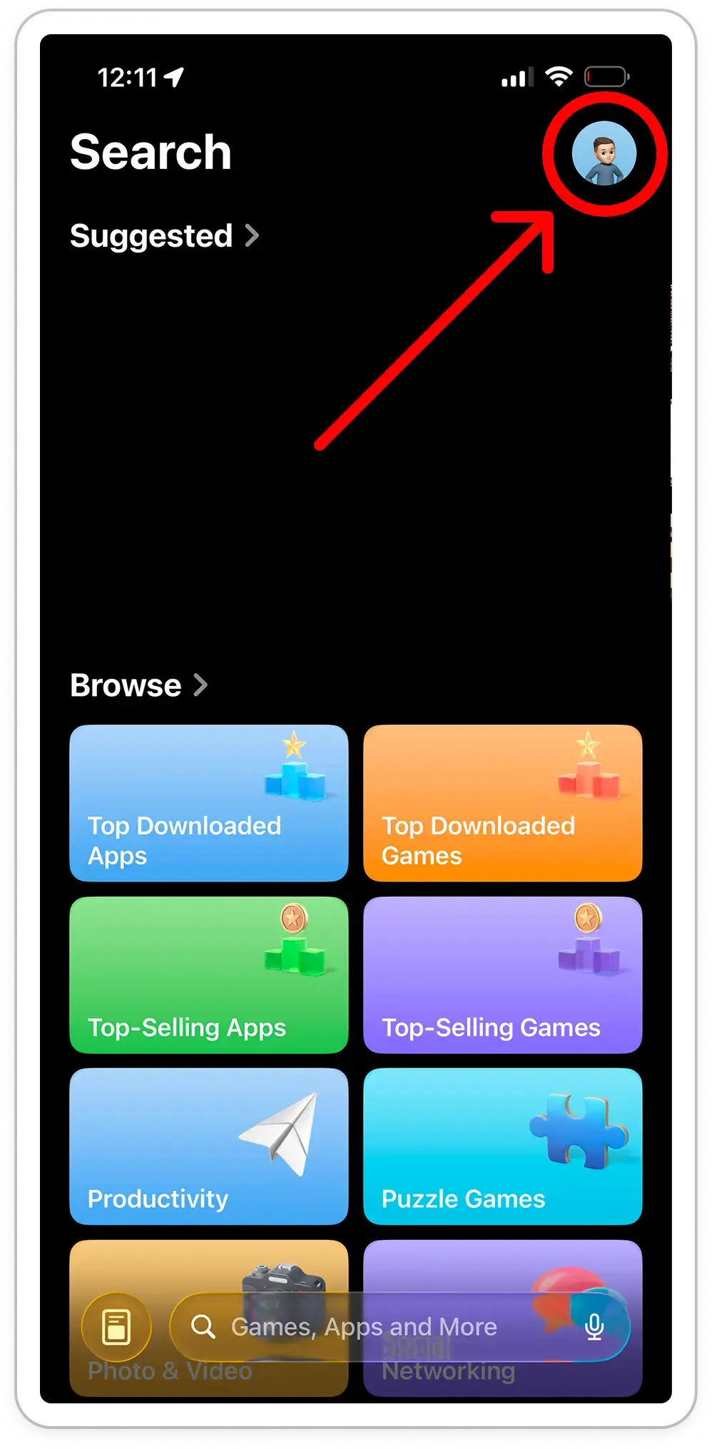 Tap your profile picture in the top-right corner of the screen.